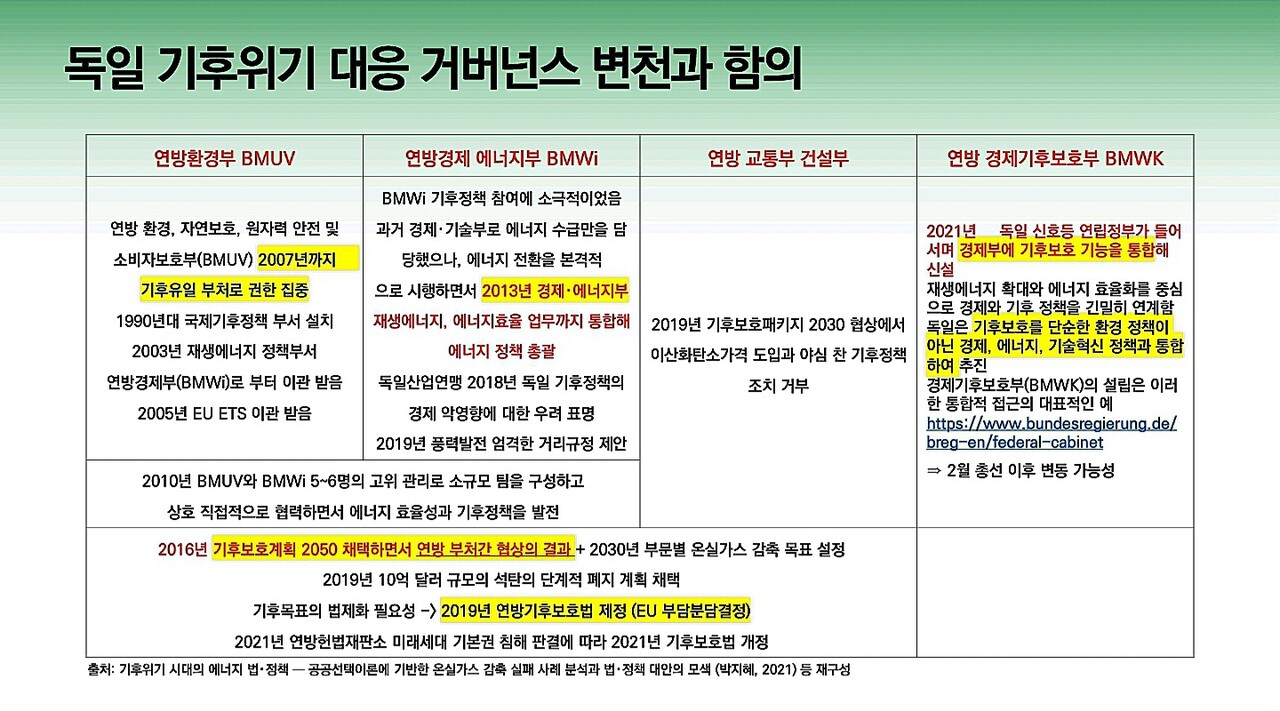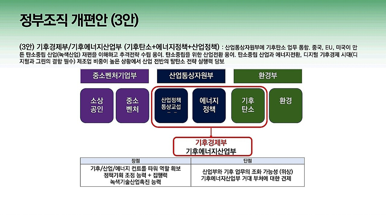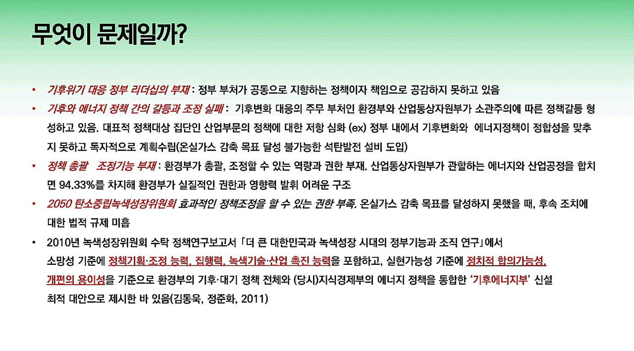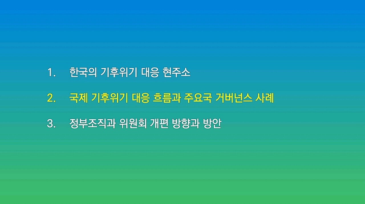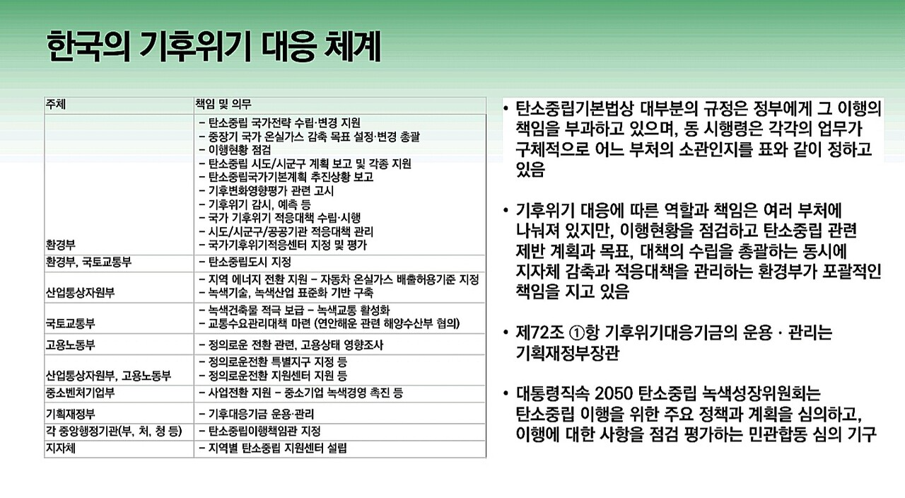 다음은 이유진 녹색전환연구소 소장이 발표한 ‘기후위기 대응 탄소중립을 위한 정부조직과 위원회 개편 방안’ 자료입니다.